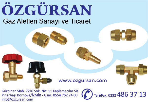 Özgürsan Gaz Aletleri Sanayi Ve Ticaret - Bornova / İzmir - Özgürsan Gaz Aletleri Sanayi Ve Ticaret - Bornova / İzmir, 1978 yılında Nedim Kütük tarafından kurulan Özgürsan Gaz Aletleri Sanayi kaliteli ve güvenli iş ahlakıyla gaz armatürleri konusunda oğlu M, Özgürsan Gaz Aletleri Sanayi Ve Ticaret Telefon Numarası, Adresi, İletişim Bilgileri, Nasıl Gidilir, Nerede, Nasıl Ulaşılır, Harita, Firma Bilgileri - Özgürsan Gaz Aletleri Sanayi Ve Ticaret, gaz armatürleri, kollektör vanası, gaz aletleri, yüksek basınç regülatörleri, dogal gaz armatürleri, nipeller, kuzine musluğu, memeli ünyon, dogalgaz musluğu, manometre, ara vana, vana rekorları, hortum ünyon, Özgürsan Gaz Aletleri Sanayi ve Ticaret Telefon Numarası, Özgürsan Gaz Aletleri Sanayi ve Ticaret Adresi, Özgürsan Gaz Aletleri Sanayi ve Ticaret İletişim Bilgileri, Özgürsan Gaz Aletleri Sanayi ve Ticaret Nasıl Gidilir, Özgürsan Gaz Aletleri Sanayi ve Ticaret Nerede, Özgürsan Gaz Aletleri Sanayi ve Ticaret Harita, Özgürsan Gaz Aletleri Sanayi ve Ticaret Firma Bilgileri